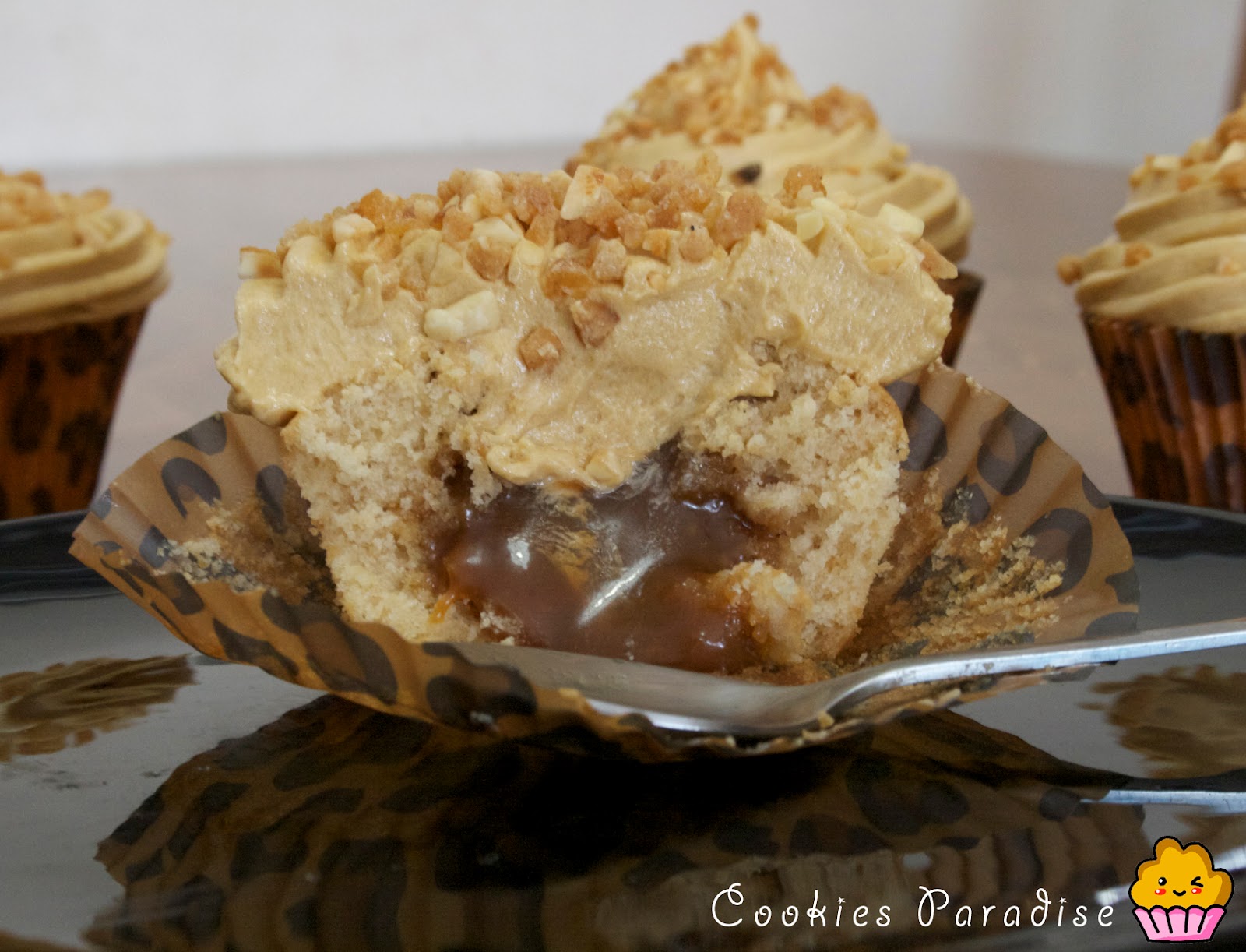 Que buena pinta tienen estos cupcakes!!Me encanta el caramelo!me apunto el truquito para hacerlo!