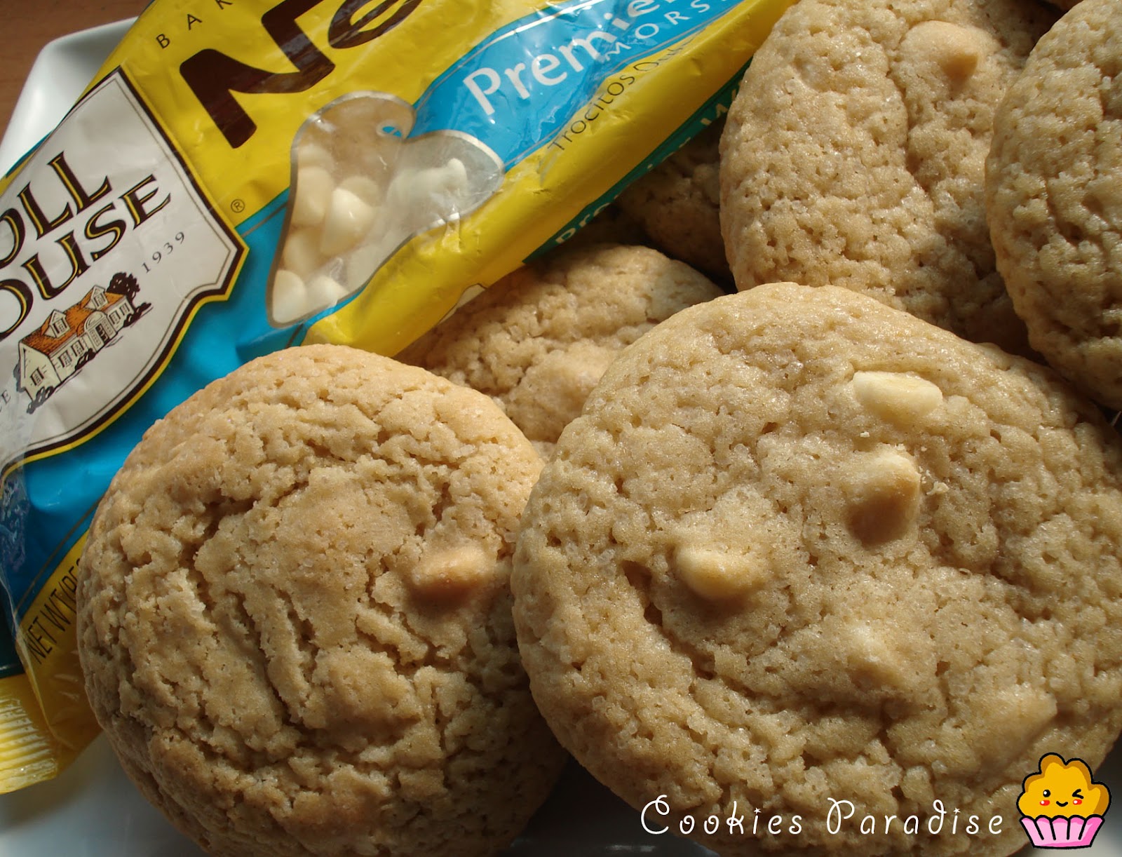Hoy os traigo la receta de chocolate chunk cookies, en español: (galletas de chips de chocolate blanco), son galletas americanas, parecidas a las del starbucks! hacia mucho tiempo que la buscaba y un dia navegando la encontré aquí fué entonces cuando guarde la receta, un dia compre los chips de chocolate blanco en juliana y me puse a hacer galletas, me gustaron mucho y ayer las hice de nuevo, aquí os dejo las fotos y la receta!