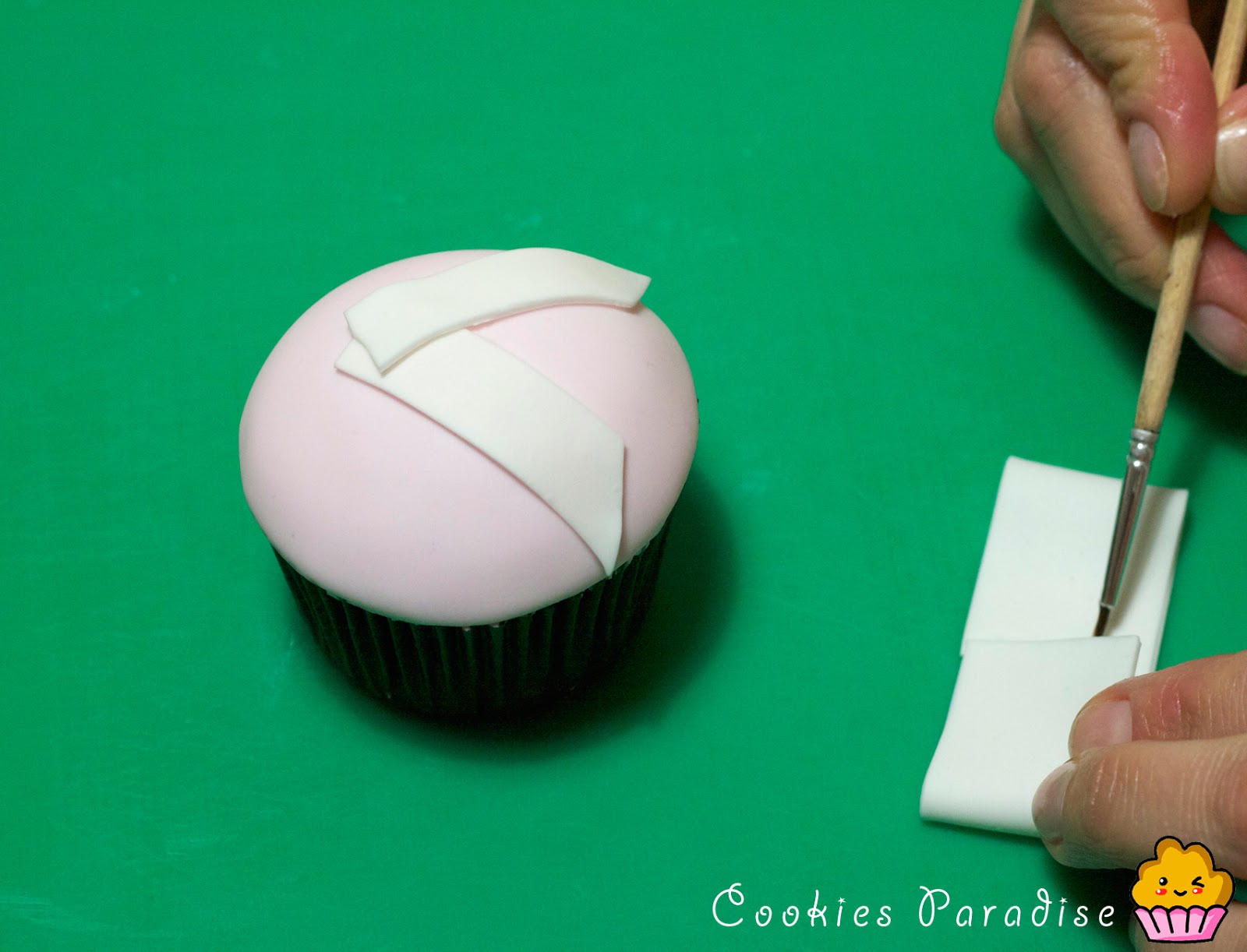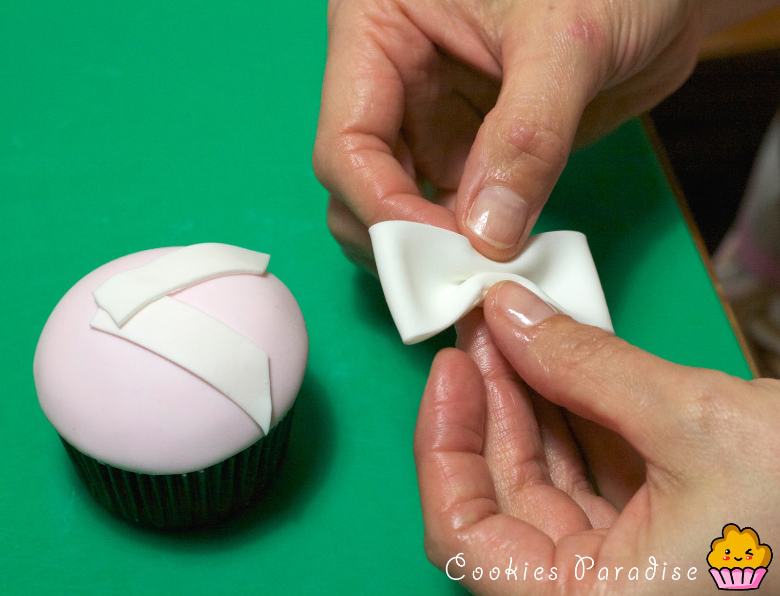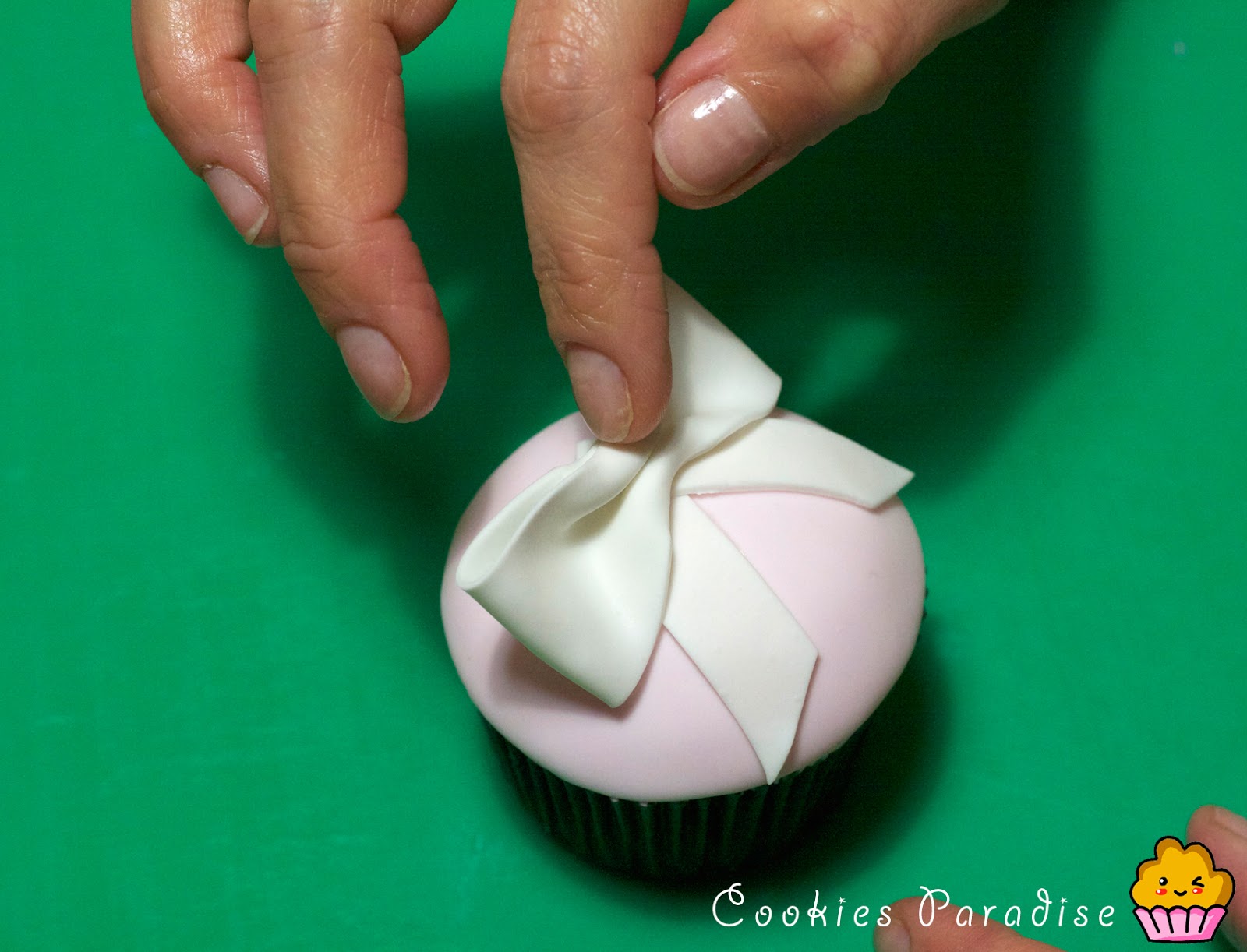 Y con cuidado lo pegamos encima del cupcake, el lazo tiene que quedar de pie, no tumbado.