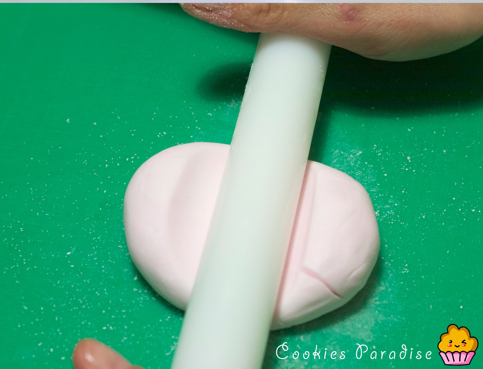 Con el rodillo amasamos un poco de fondant de color rosa pastel.