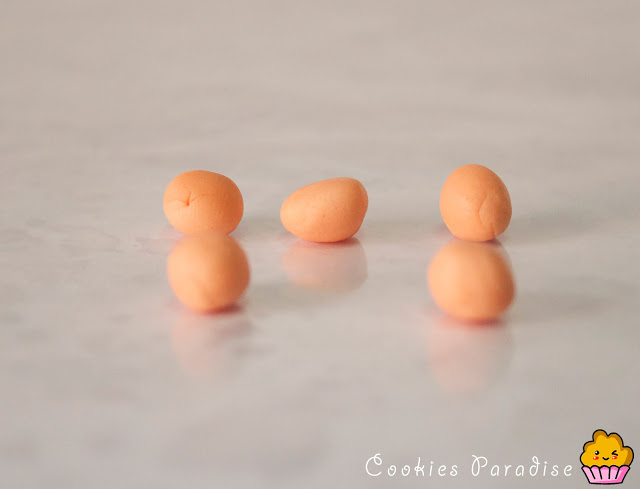 Paso 2: Cojemos un poco más de fondant y formamos 5 mini bolitas.