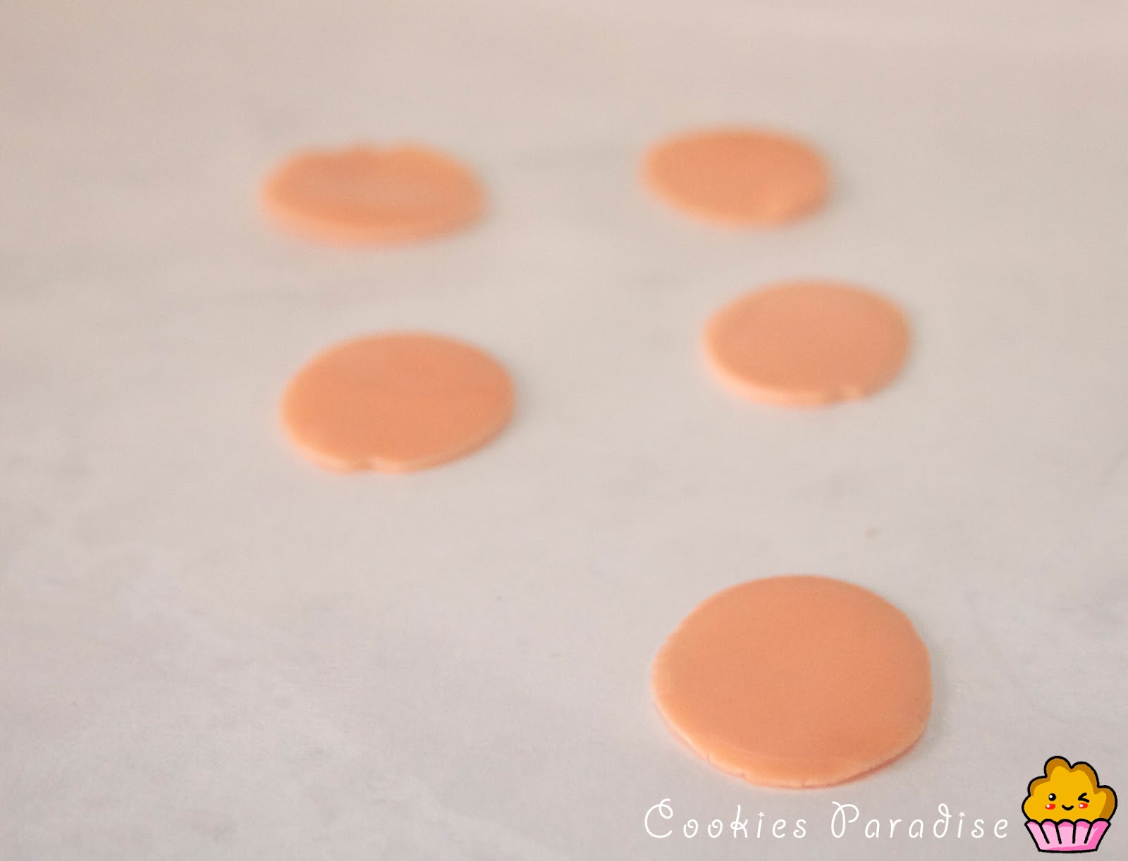 Paso 2: Cojemos un poco más de fondant y formamos 5 mini bolitas.