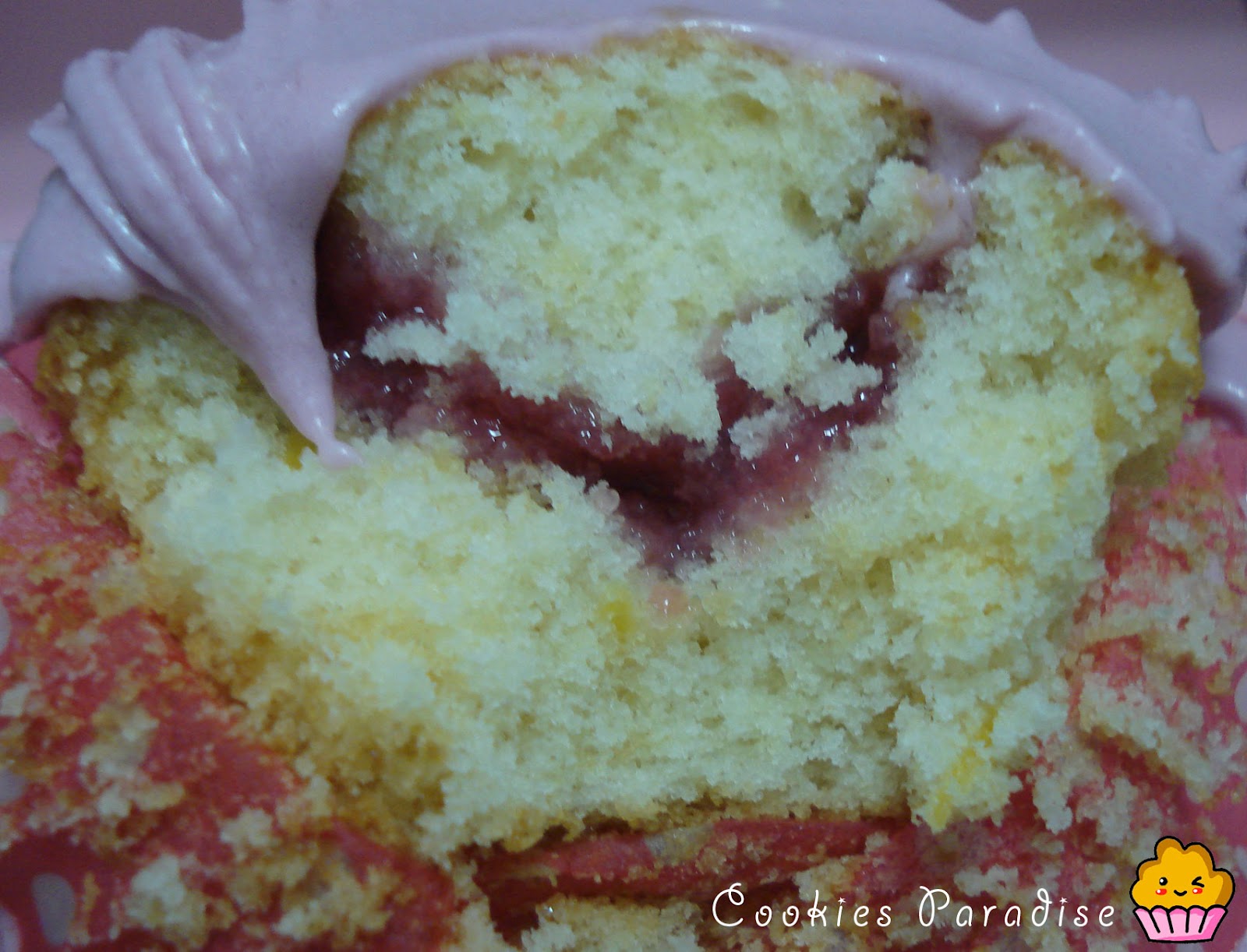 Ya sabeís que probar cosas nuevas tiene su riesgo, en mi receta de hoy cupcakes de limón, relleno de crema de fresa y butercream de philadelphia de fresas, en verdad estoy muy satisfecha por el sabor y resultado conseguido, perooooo, el butercream se me ha ido la mano con el sirope de fresa y ha quedado menos espeso….»fallo» la próxima vez tendré que hecharle menos para que no cambie la textura, por lo demás….me ha encantado la receta, siempre se aprende algo en la cocina. Hoy he aprendido esto.