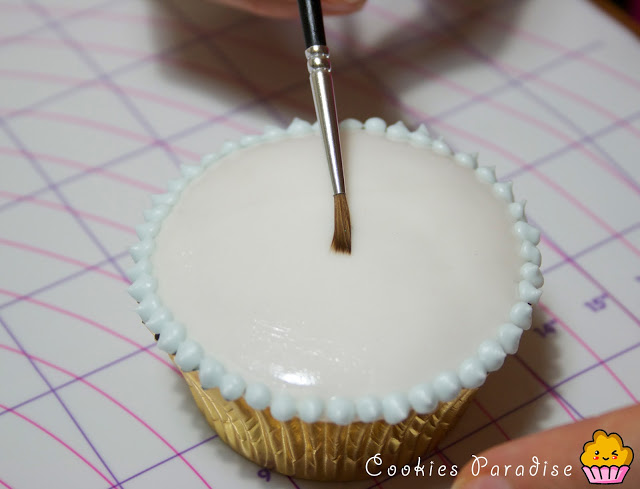 Ahora pondremos un poco de glasa encima del cupcake esto hará de pegamento.