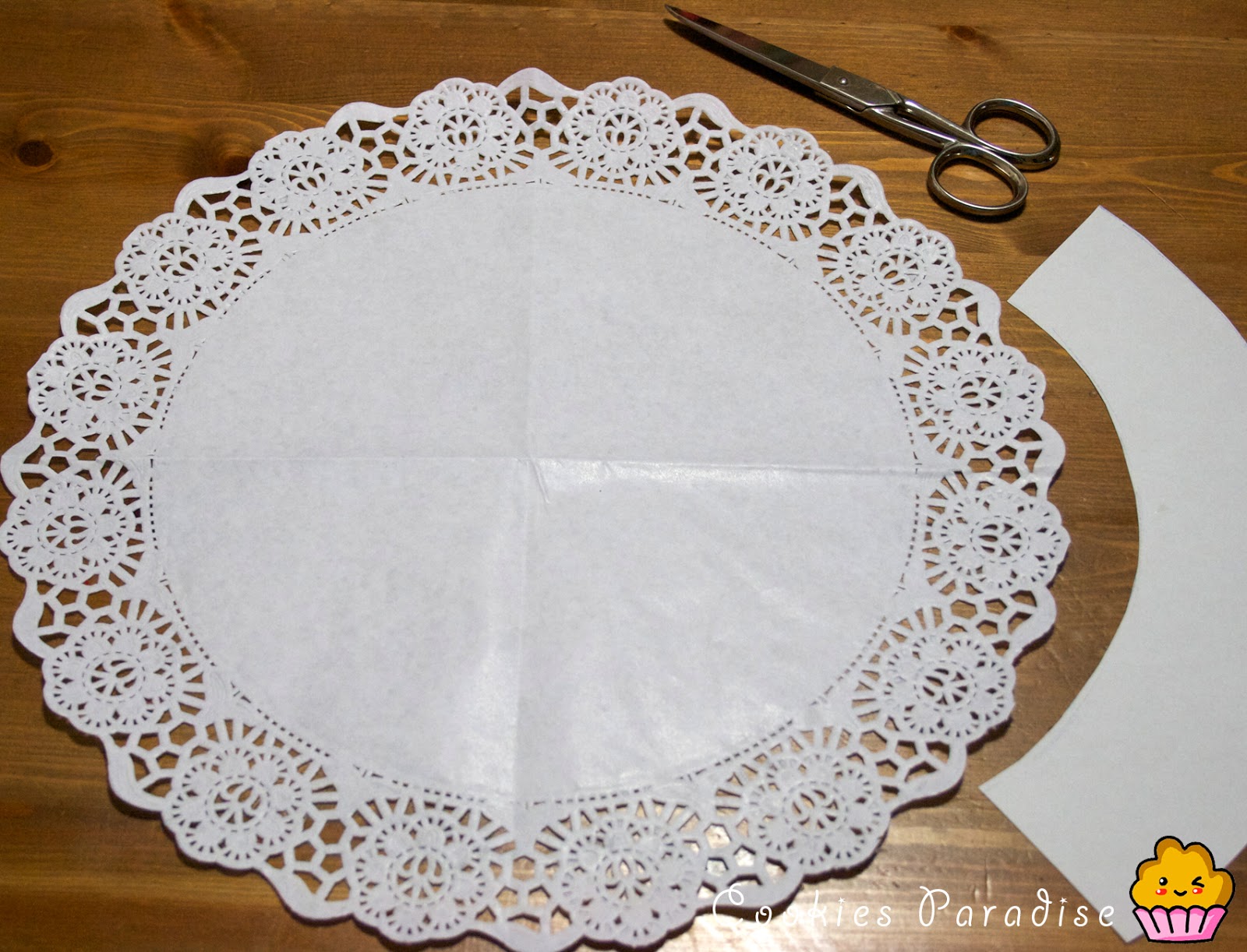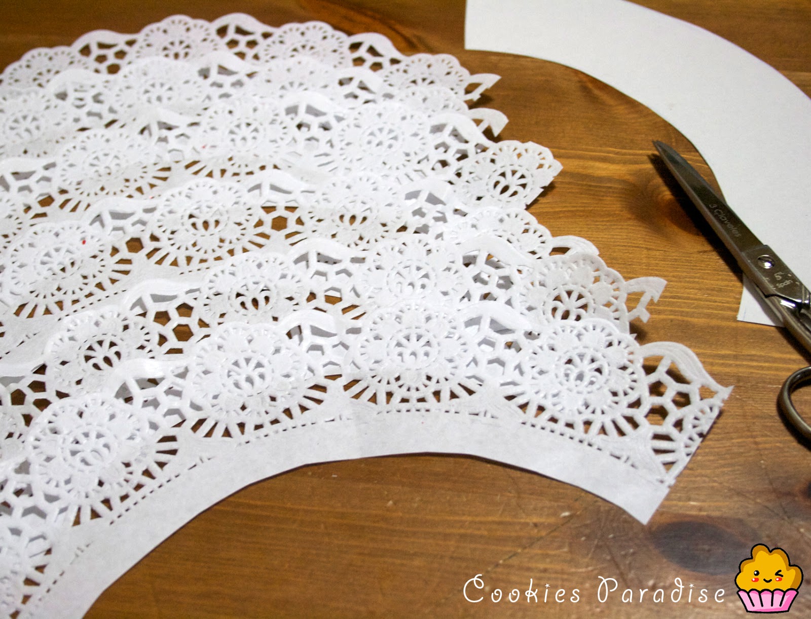 Vamos a darle el toque final, con estos papelitos de tartas que encontramos en los chinos, nos haremos unos wrappers (decora cápsulas) divinos!! Sólo teneís que recortar las blondas. Mi blonda era aprox. de 25 cm de diámetro.