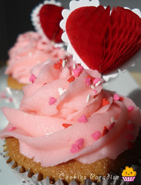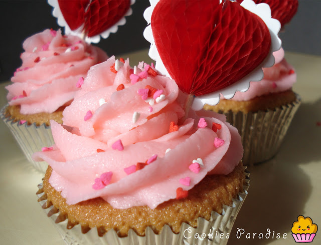 Hace unos dias me fije en estos cupcakes con sorpresa incluida así que me decidí, este año para San Valentín «Cupcakes con sorpresa» , he aprovechado la ocasión para probar una receta distinta para hacer la masa del cupcake, para el buttercream he usado la receta de siempre (Alma) si no conoceís su blog os animo a visitarlo, os encantará!