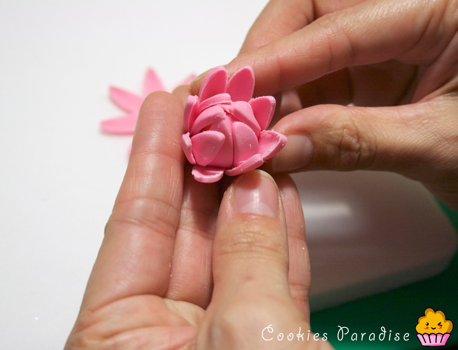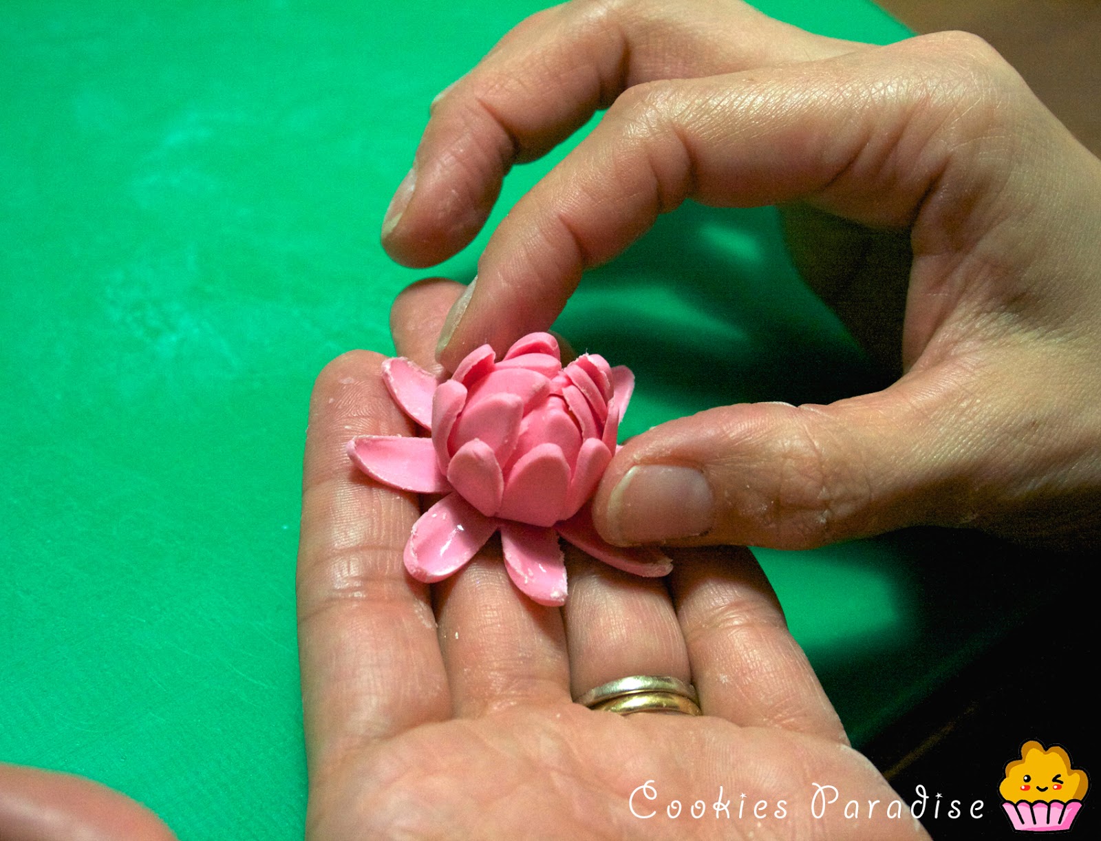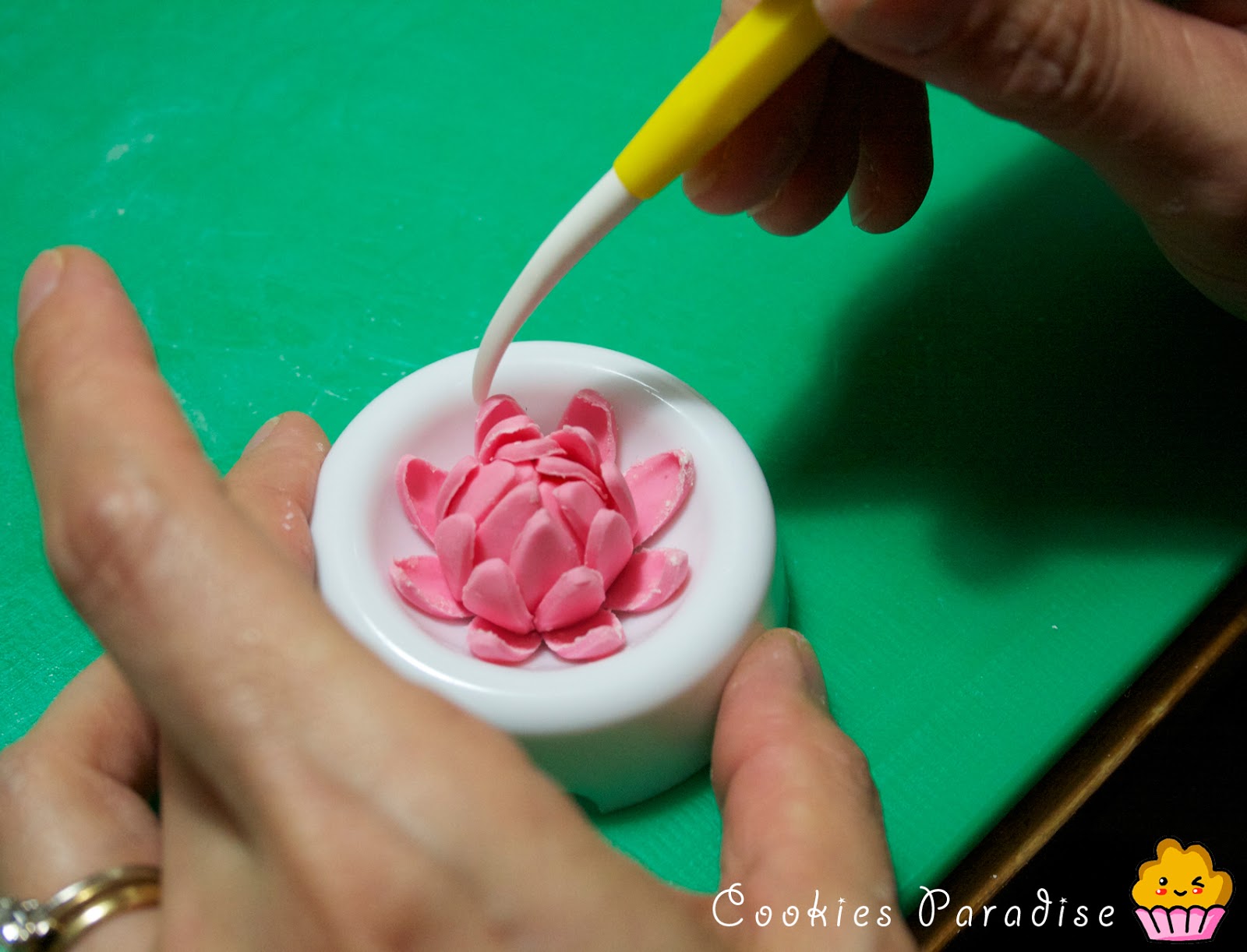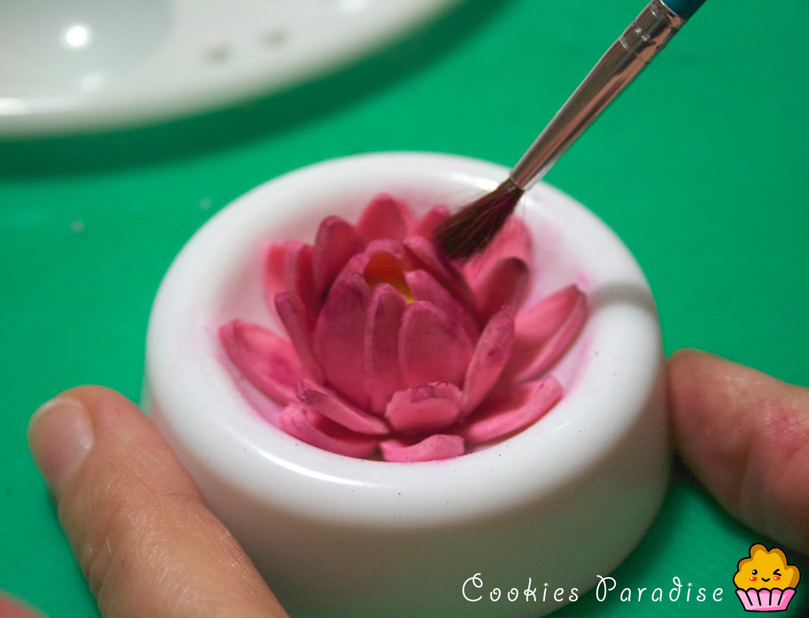 Si queréis podéis pintar los pétalos del centro más oscuros para darle realismo a la flor. Yo uso colorante en polvo sugarflair.