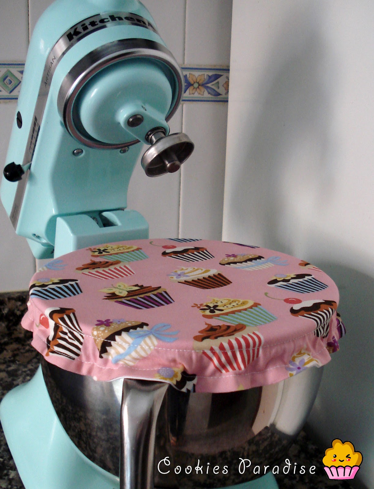 Por higiene sé que es habitual usar plásticos y se tiran….pero a mi me hacía gracia hacerle algo más glamuroso a mi KitchenAid, porque ella lo vale :P, total…en casa pongo varias lavadoras al dia, como se puede lavar….el tema de la higiene, resuelto por mi parte! Hace tiempo compré un platico para forrar bolsas de desayuno, es un plástico que por un lado lleba tela, es especial para coser, así que esta tarde….me he puesto a ello, y aquí os enseño la fundita del bol de mi Ka! Hay varias formas de hacerlo, pero esta es sin duda….es la forma que más me ha gustado. Espero que os guste tanto como a mi, además he usado mi tela favorita! Besos!