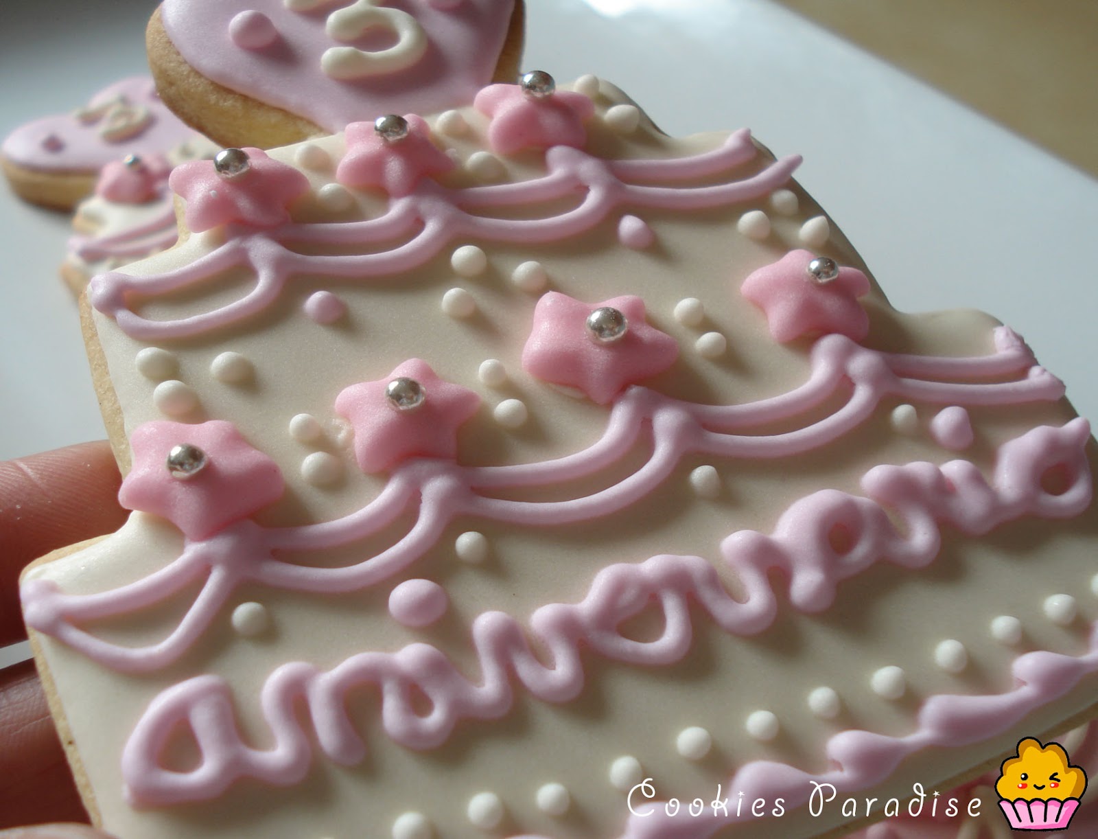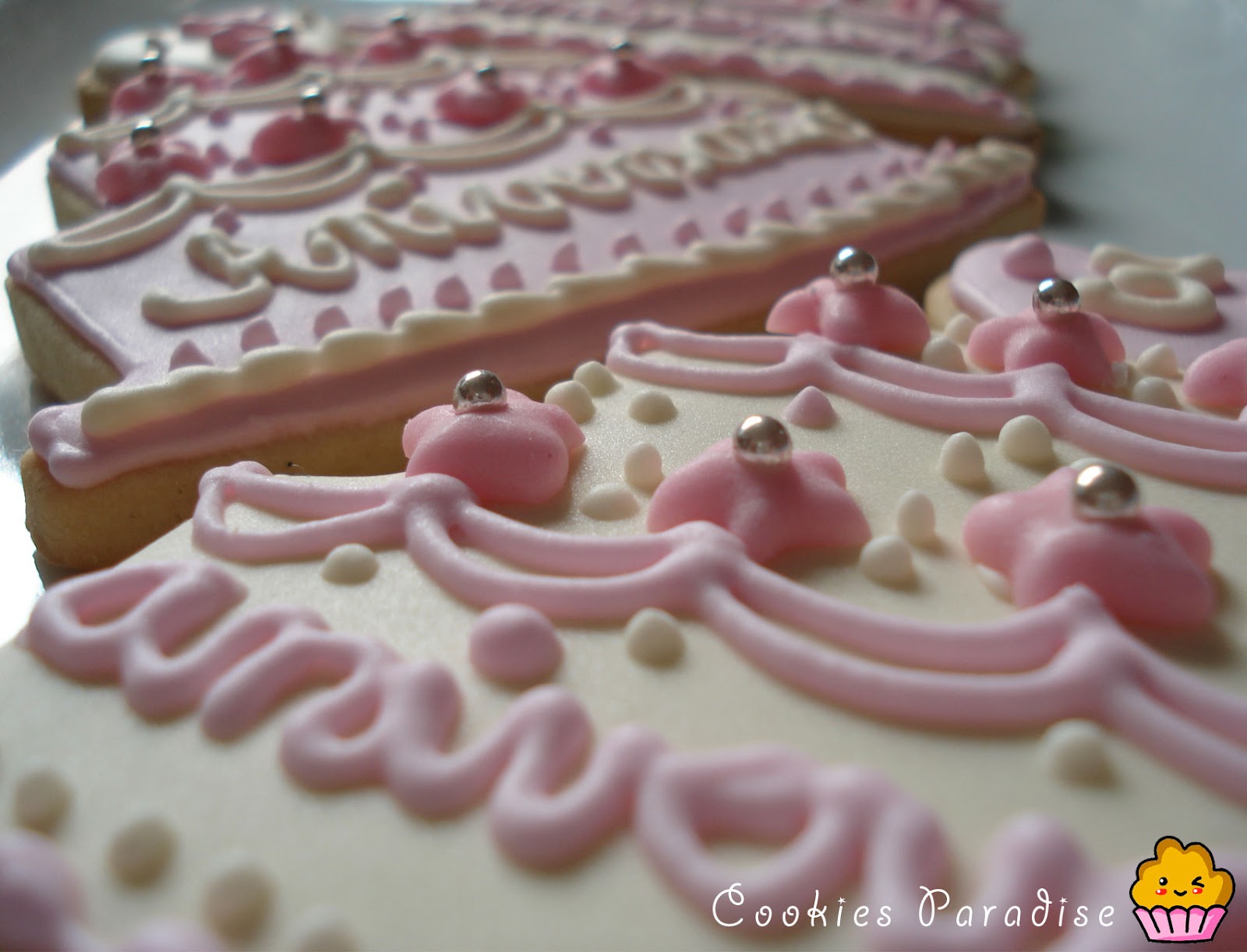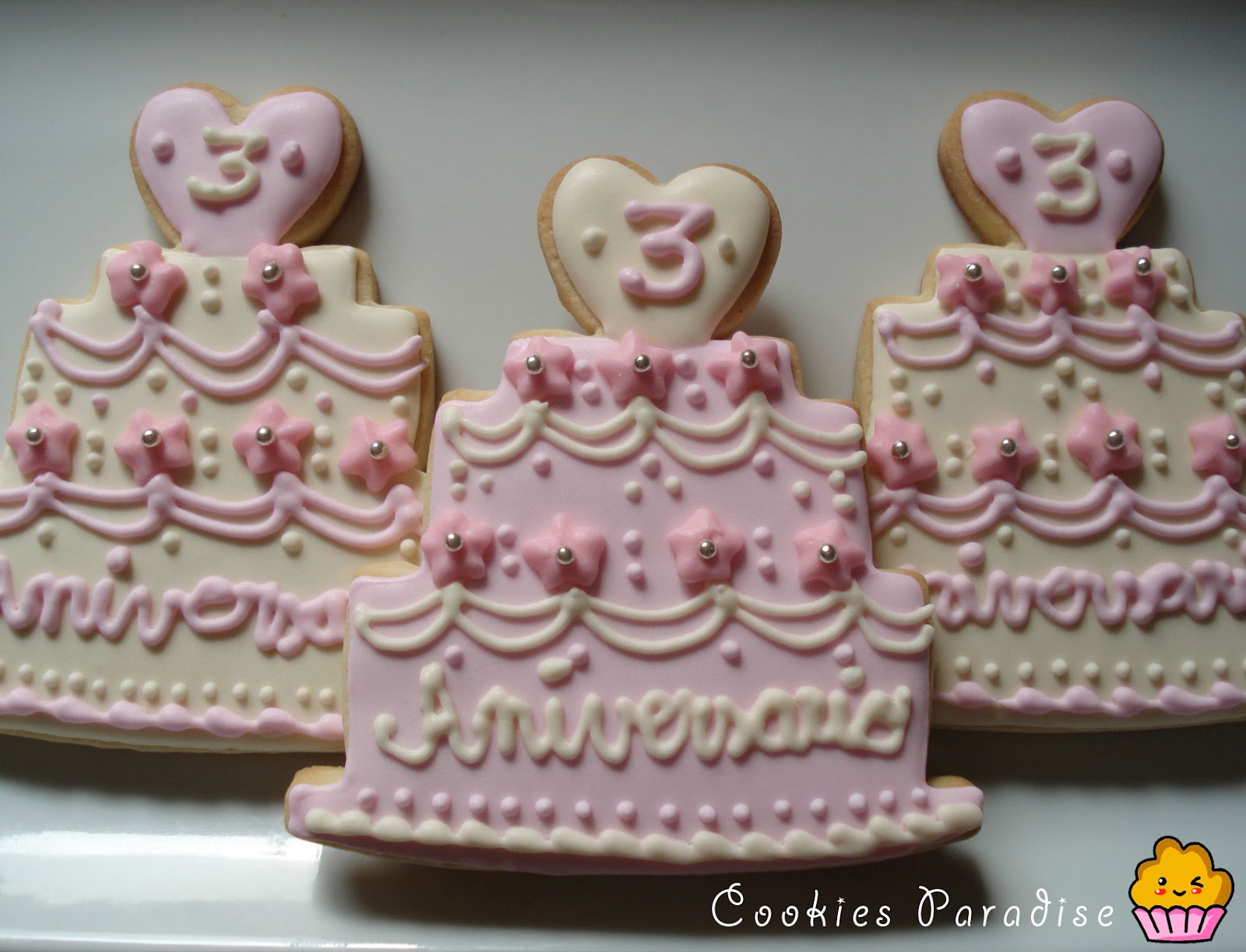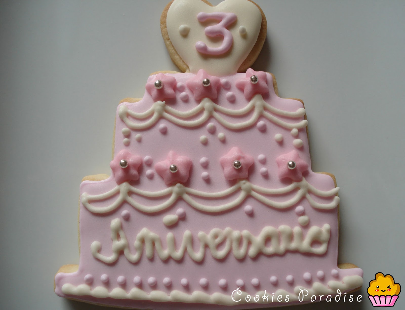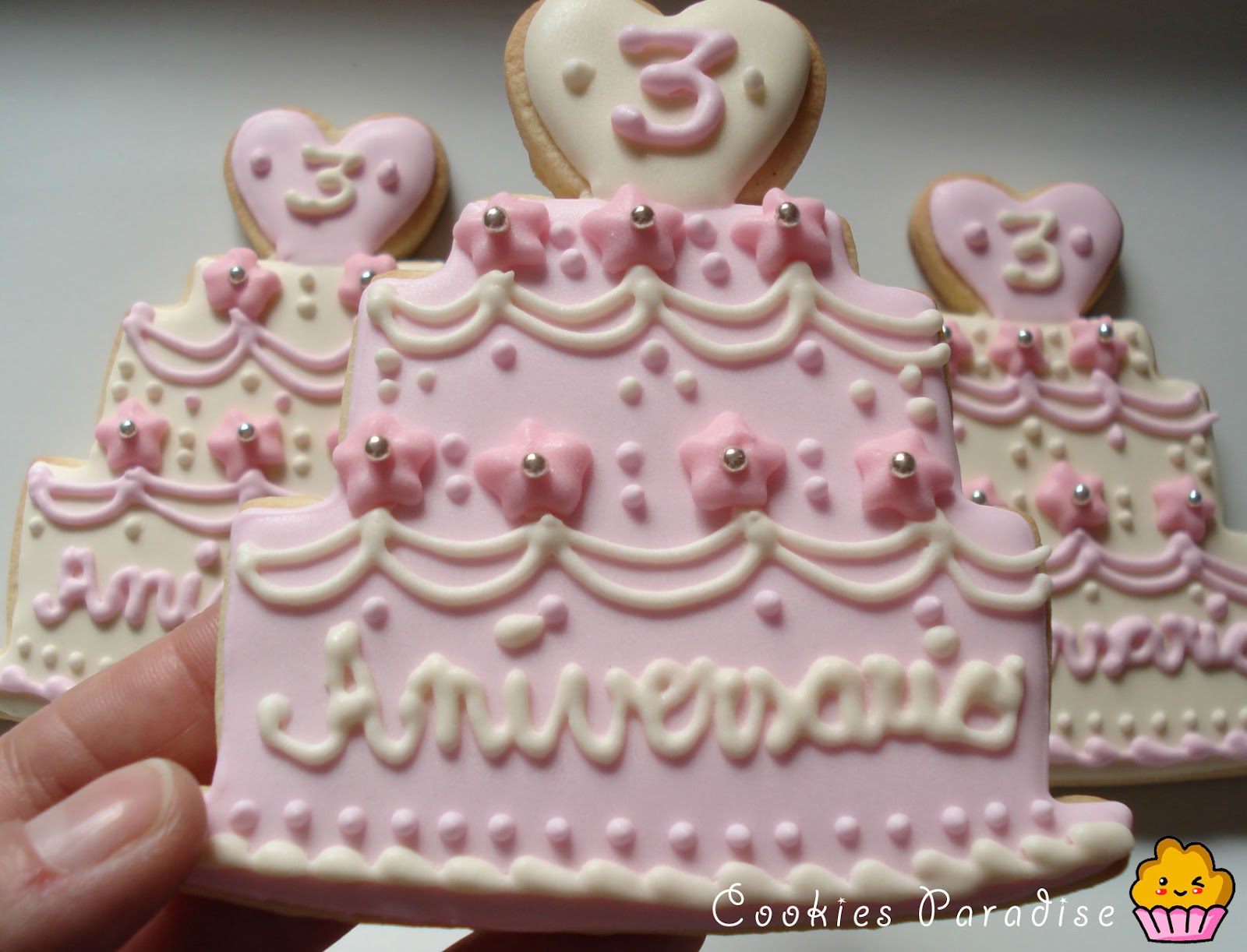 aquí. Lo que no me ha gustado mucho ha sido que he utilizado la boquilla nº 2 de wilton para la escritura de «Aniversario» y tenía que haber usado otra más fina, tipo la del 1,5 PME….Por lo demás, me ha encantado decorarlas, primero hice el delineado y el relleno y al cabo de un par de horas las decoré y todo fué perfecto. Ya las he puesto en bolsitas para que no se estropeen, espero que os gusten! Hasta la próxima!