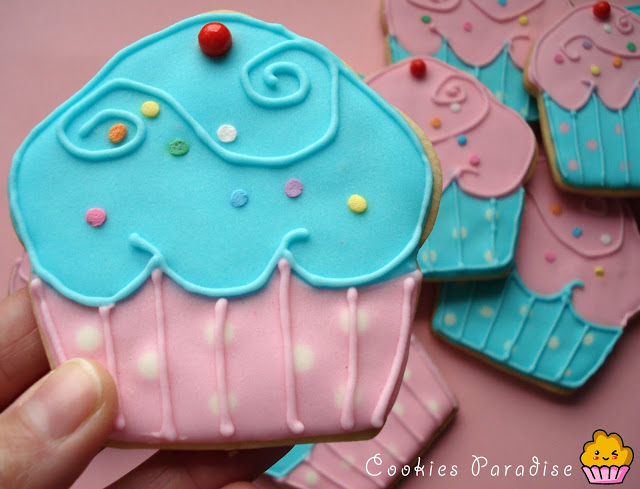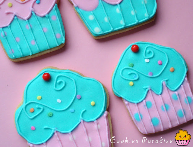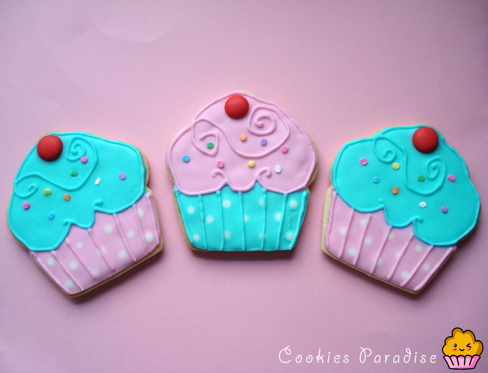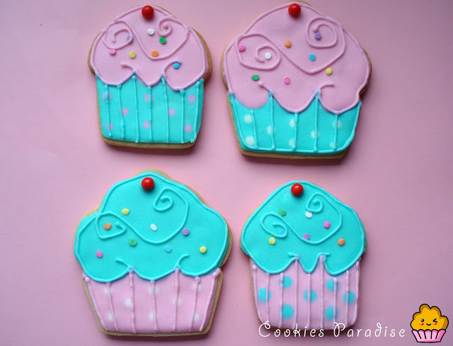 Aquí tenéis mis galletas, esta vez decoradas con forma de cupcake, sé que las fotos no son muy buenas, pero hoy aquí en Barcelona la iluminación es muy mala, pero no podia esperar más, tenía muchas ganas de poner mi primera entrada en el blog, espero que os gusten.