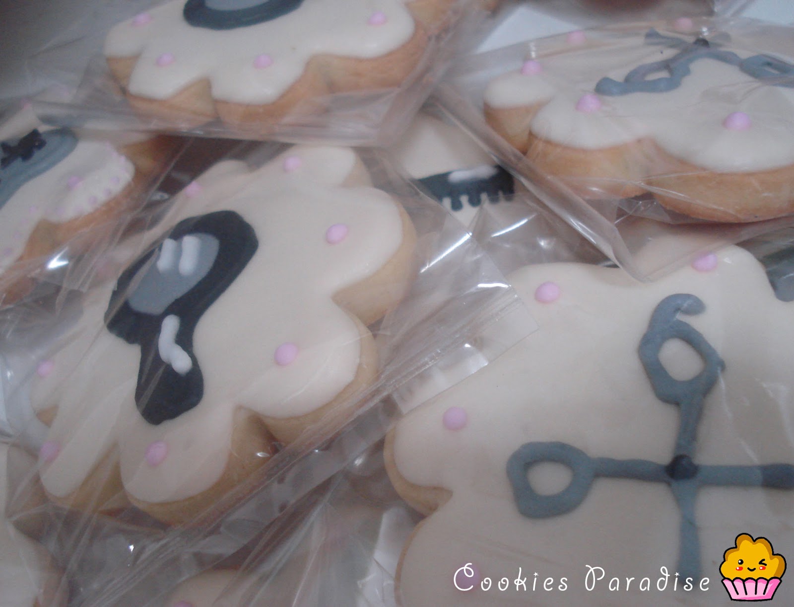 He decorado unas galletitas para mi suegra, si!!! lo habeís adivinado!! es peluquera!!, todo ha ido muy rápido, ya las tengo preparaditas en sus bolsitas (se me olvido fotografiarlas antes) pero he querido hacerle unas fotos para que las veais antes de cerrar la cajita…