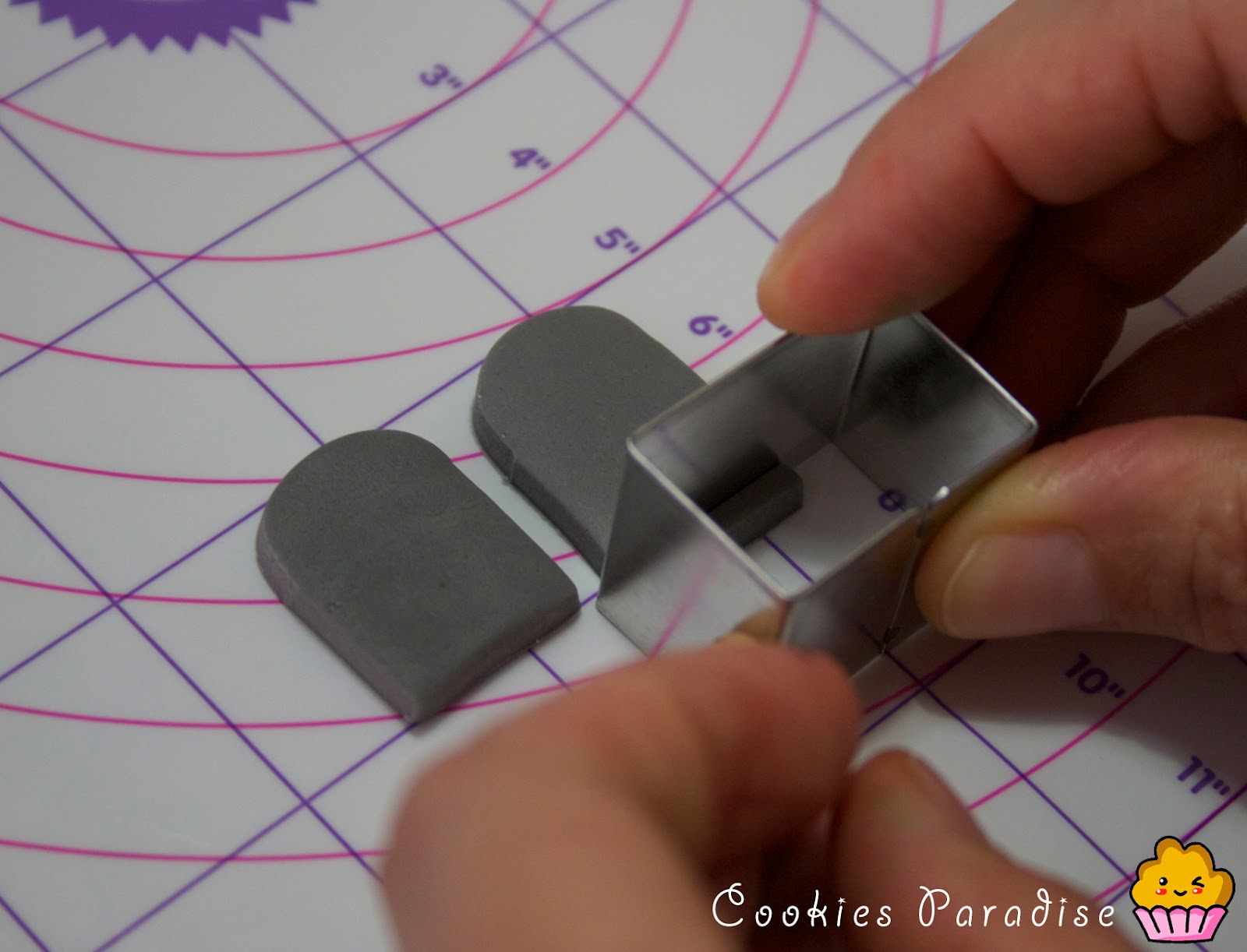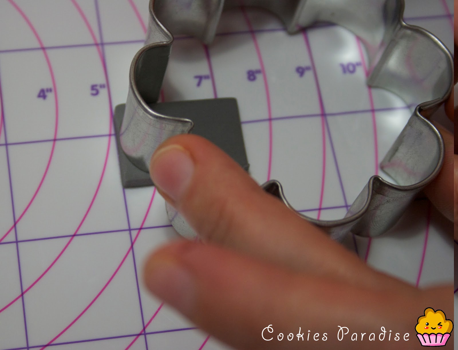 Y con otro cortador en forma de flor como podeís ver hice la forma redondeada de la parte superior de la tumba.