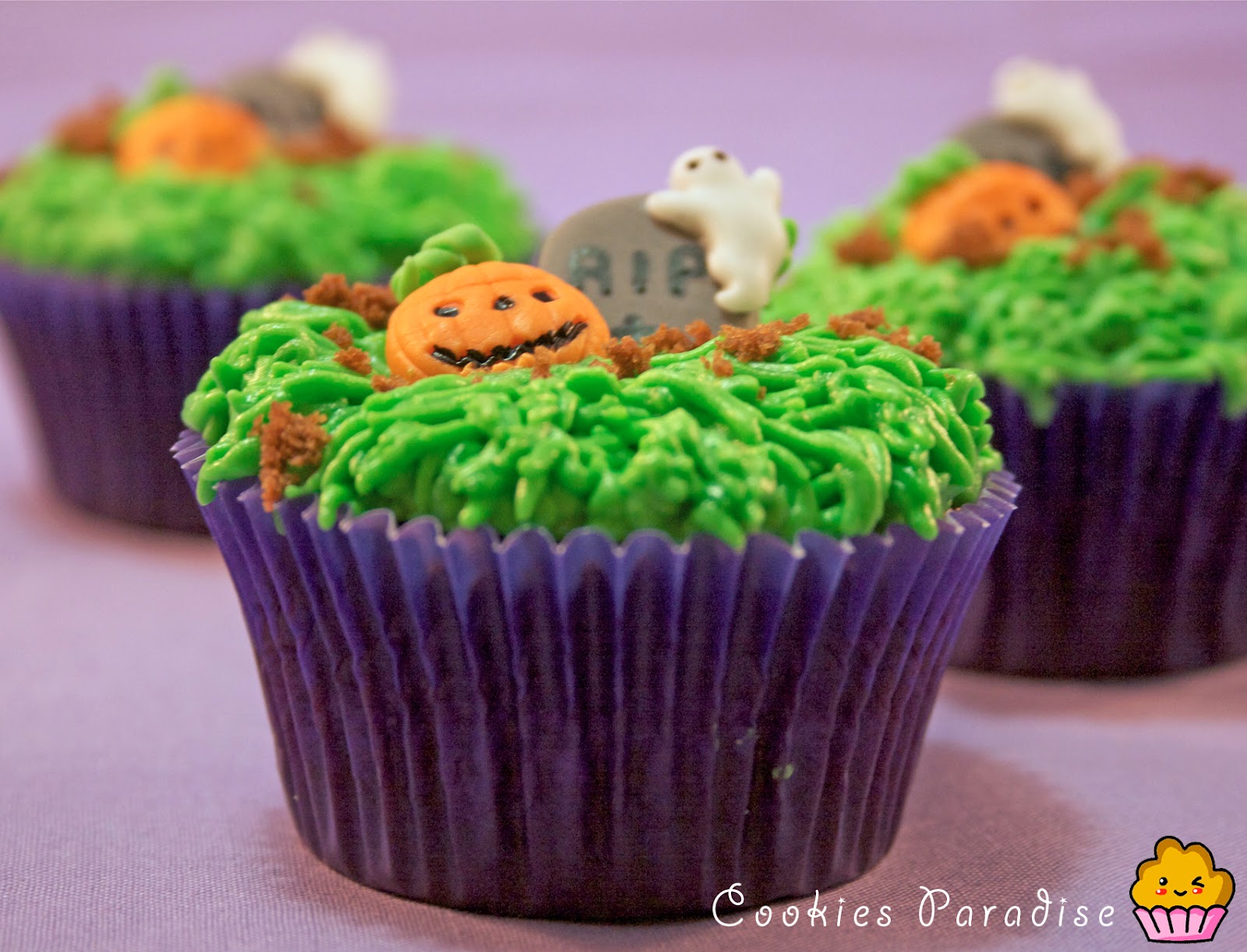 Por cierto, antes de que me pregunteís las capsulas color purpúra són de HOM podeís comprarlas aquí y el molde de halloween es de silicona y lo teneís aquí. (si no está disponible tened paciencia!! se agotarón enseguida pero no tardarán el llegar) El rotulador de la tumba y de la calabaza negro es comestible, no os asusteís!