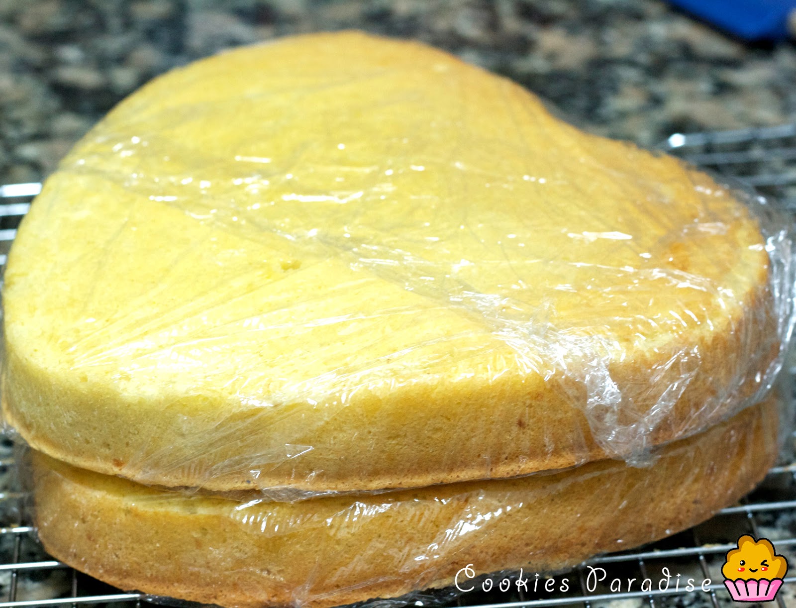 Para empezar: preparamos el bizcocho mucho mejor si lo hacemos el día anterior, si lo haceís con tiempo (es mejor dejarlo reposar envuelto en film)