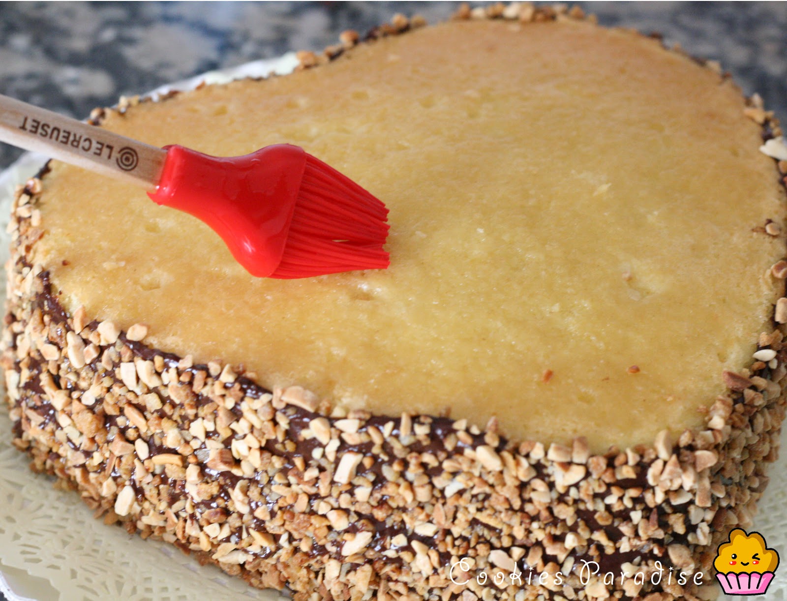 Pintamos la capa superior con álmibar y la cubrimos con la crema de yema.