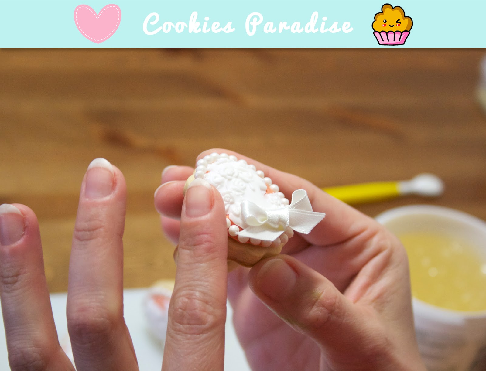 Para la decoración podeís añadir un lazo de raso y pegarlo con glasa.