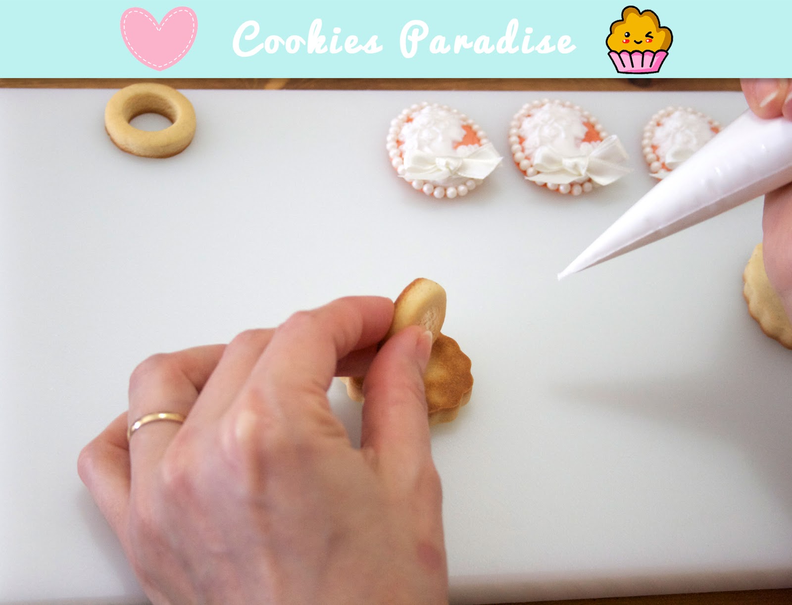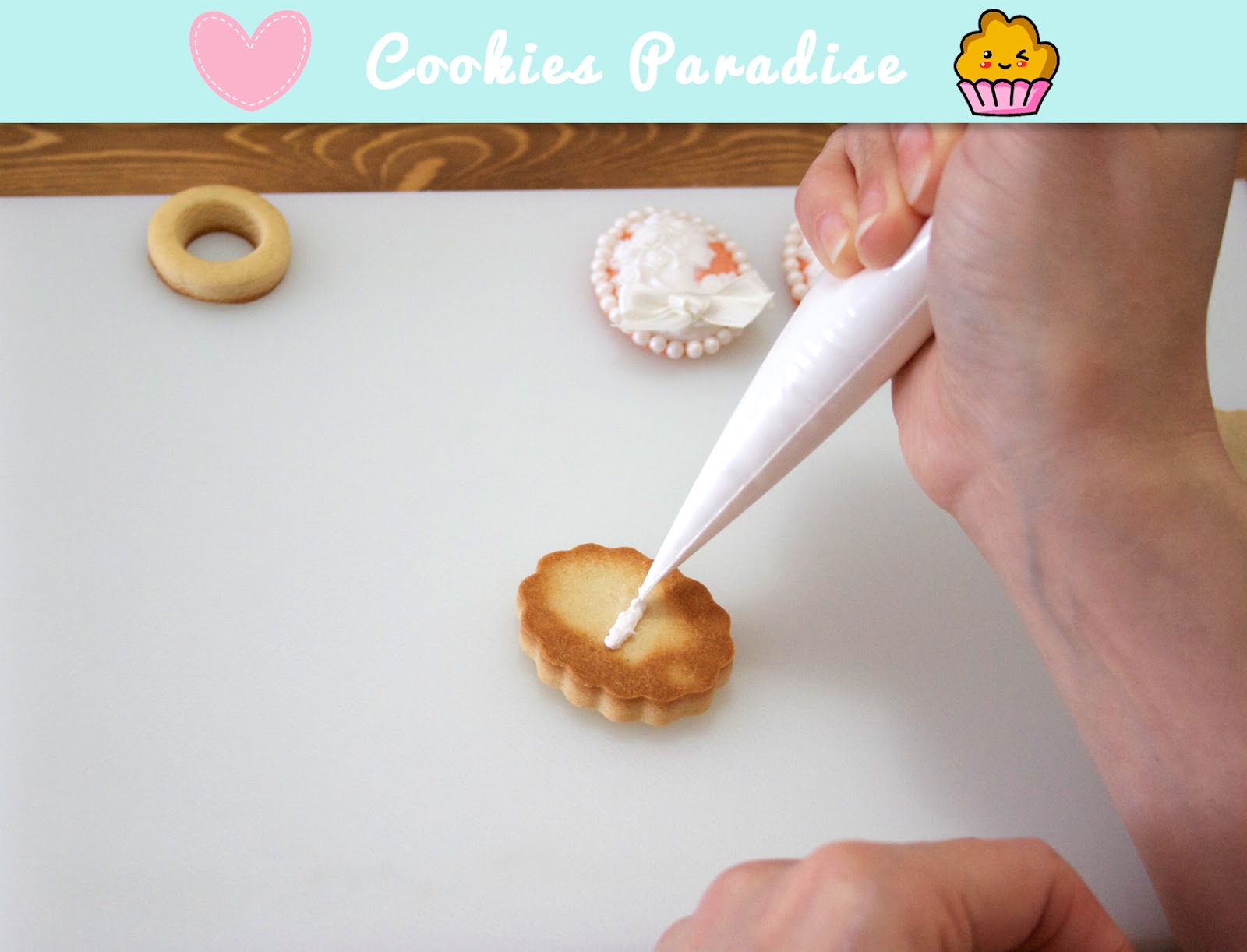 Pondremos un poco de glasa detrás de la galleta ovalada.