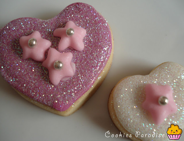Y aquí las teneís, decoradas a lo rápido porque tenía que preparar la cena, ducha….pero han quedado graciosas verdad? No os asusteís, la purpurina es comestible! Esta mañana he hecho unas fotos para vosotros/as, mientras terminaba una horneada de galletas muy especial, os pondré la entrada en breve con fotos del paso a paso, pues estas galletas tendrían que salir para Córdoba este sabado (aprovechando que tengo que ir a enviar las galletas del sorteo)