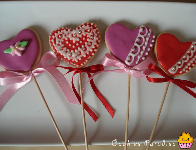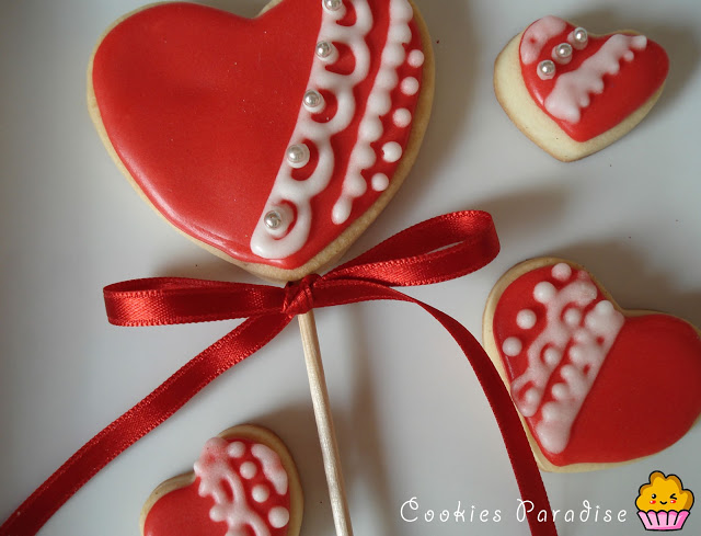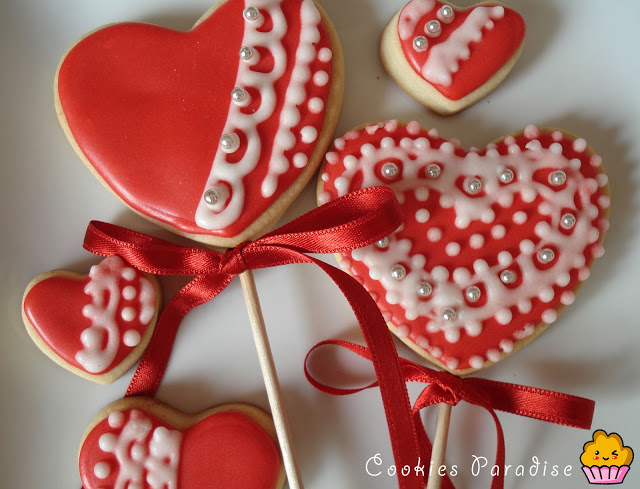 Hace un par de dias hice las galletas de  té os acordaís? Bien, pues me sobro un poco de masa que guardé en la nevera, ayer por la tarde en un ratito que tenía, cojí los cortadores, unas brochetas que compré en el mercadona y me puse a hornear la última tirada de galletitas, como se acerca san valentín, pensé…..corazones!