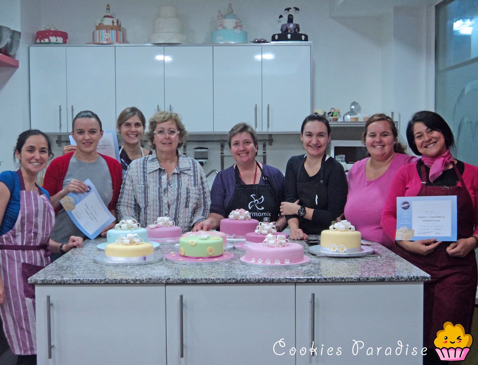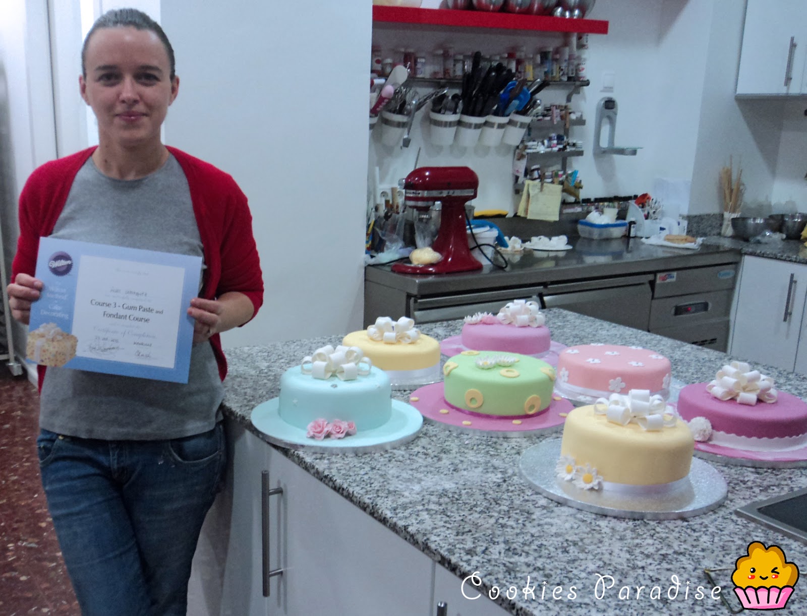 Aquí una foto para el recuerdo….con mi diploma Wilton 3…. rodeada de tartas!!