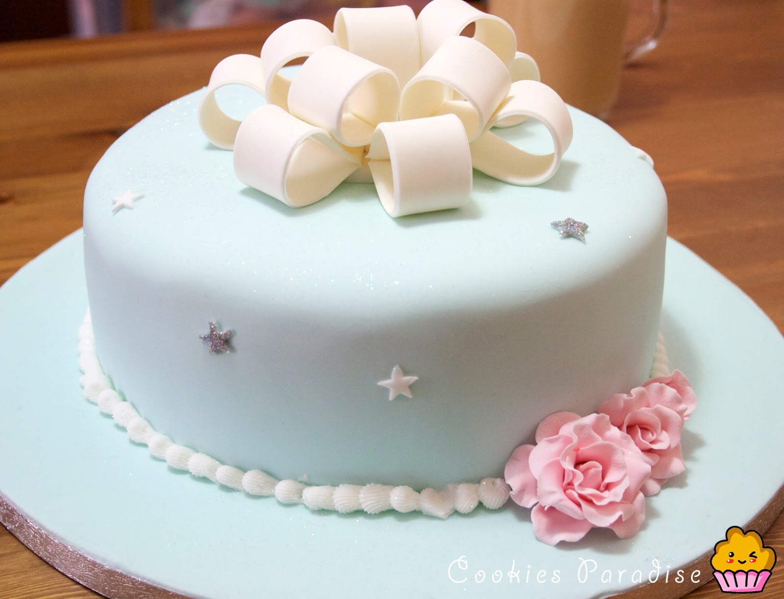 Después de un día intenso de curso y llegué a casa con mi título oficial Wilton 3!! Y por supuesto… con mi tarta azul !!